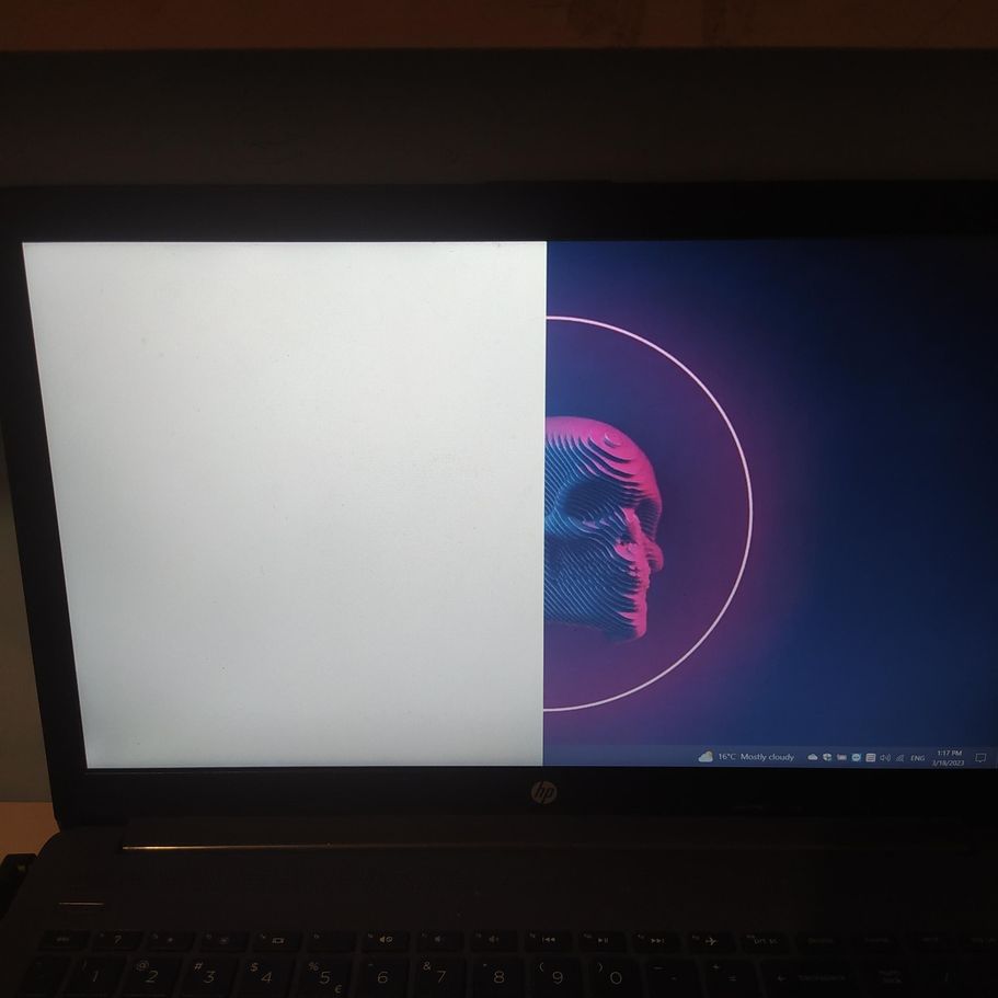 Dans le cas ou juste une moitié de l'écran apparait blance et l'autre correctement, cela peut venir d'un problèmesur la nappe de l'écran ou de l'écran lui même.