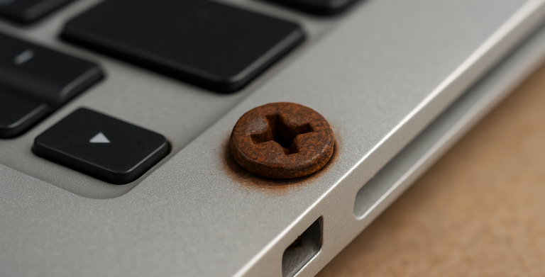 Vis foirée d'ordinateur portable DELL, une vis rouillée